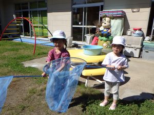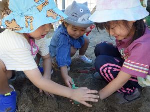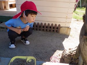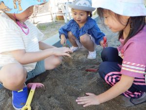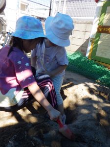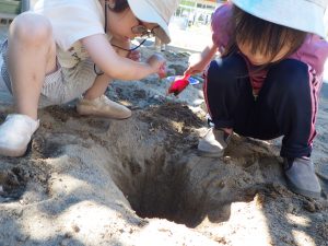砂場で深い穴を掘ったら、入りたくなってきたね…