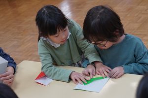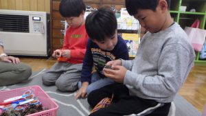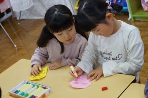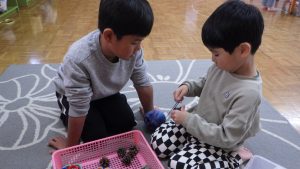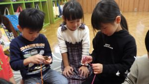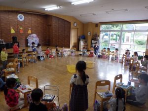 先生の代わりに年長さんのお友達が手遊びをして、待っててくれたり