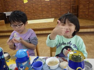 昨日は秋の収穫に感謝してほし組さんがご飯と豚汁を振舞ってくれたのです。