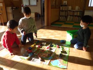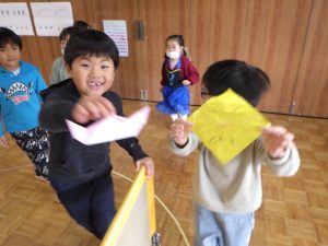 違うクラスのお友だちと、一緒になって走り回って楽しそう♬