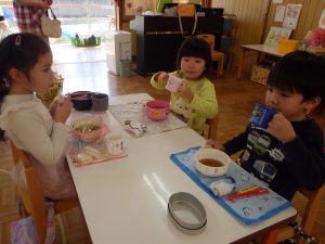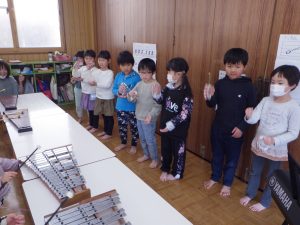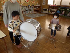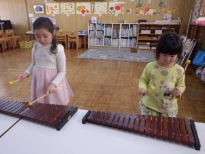 ちゅうりっぷ組のお部屋から聞こえてくるにぎやかな楽器の音に…