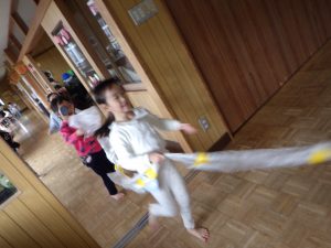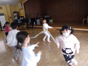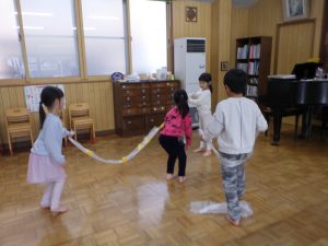 紐に当たらないように、下をくぐったり、ジャンプ💨