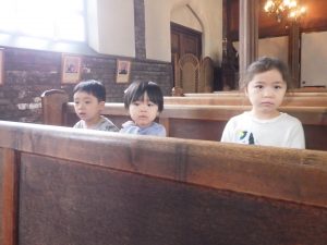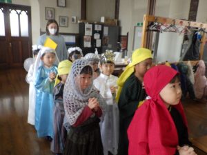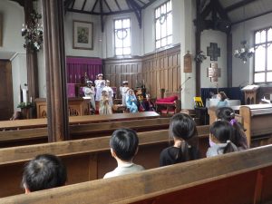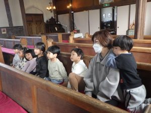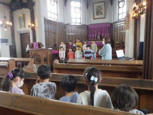 本番と同じように教会を使って、衣装も着ての練習!お客さんのおひさまさんちゅうりっぷさんも見ている中での練習!!ちょっぴりドキドキしながらの練習もまた本番に向けていい練習になりました✨