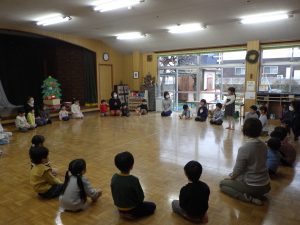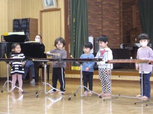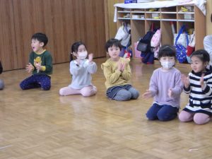 クリスマス会に向けて一生懸命練習していたちゅうりっぷさんの楽器演奏を、お客さんになり見守ってくれていたほしさん、おひさまさんも今日はやってみよう!