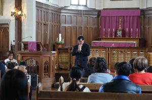 司祭さまとお祈りをしてコンサートの始まりです!