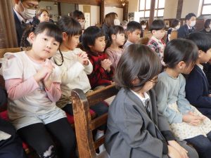 耳を澄まして聴いたり、オルガンに合わせて歌ったり。