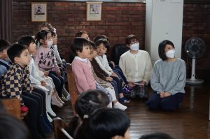 耳を澄まして聴いたり、オルガンに合わせて歌ったり。