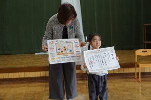 今日は絵画コンクールで賞をとったお友達に賞状が届いたので