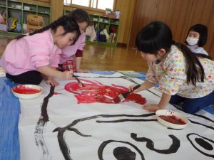 みんなで力を合わせて、ペタペタぬりぬり🖌