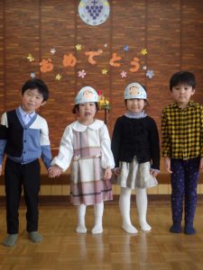 雪がいっぱい降っていたので、1月のお誕生会はお礼拝もセレモニーも幼稚園でしました⛄