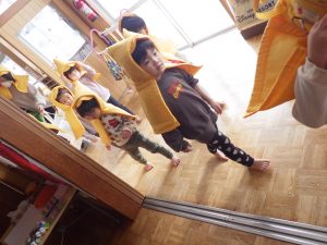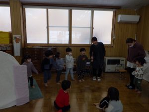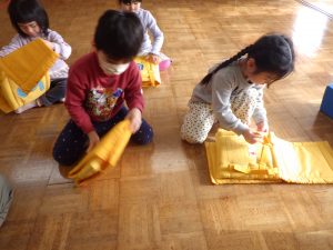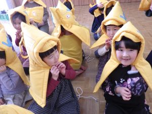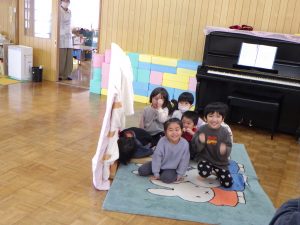 避難訓練の後のおひさまさんは、『てぶくろ』の劇あそびをして遊んだよ~♫
