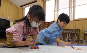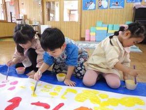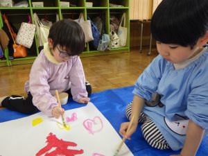 みんなで一つの紙に絵の具で描くのも楽しかったね。