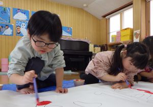 お部屋に戻ったおひさま組は…ぬりぬり~♬