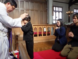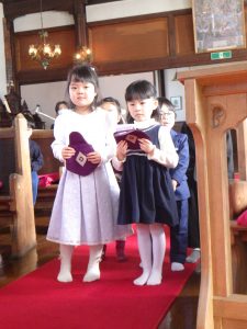 教会で司祭様に祝福していただきましたよ。