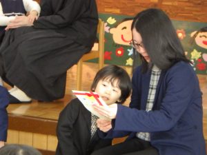 幼稚園に戻ってお楽しみのセレモニー💐