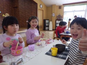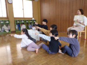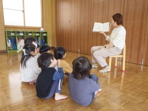 さて、お部屋の中で『わたしのワンピース』の絵本を見ていたちゅうりっぷ組。