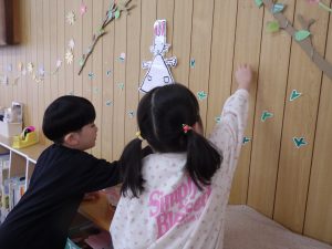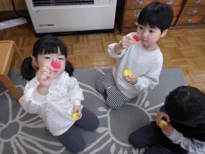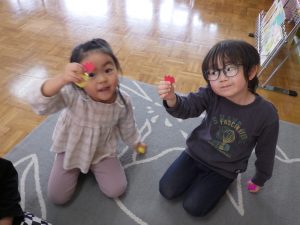 さて、お部屋の中で『わたしのワンピース』の絵本を見ていたちゅうりっぷ組。