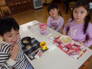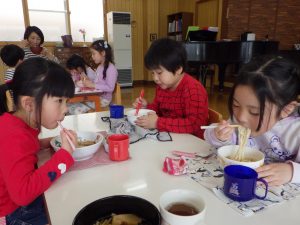 ほし組さんは自分で麺を袋から出して、具や汁も自分でもらいに行きます。