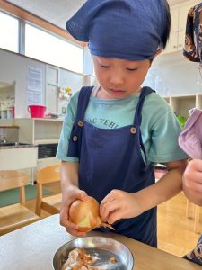 最後はたまねぎの皮むき!!