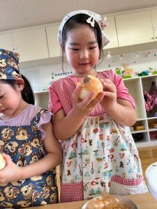 「涙出てくるかな~」とつぶやきながら皮をむいていたね😆