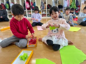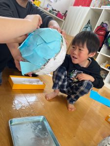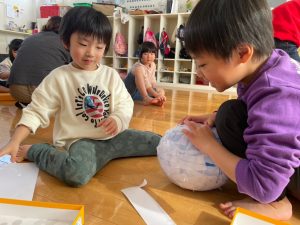 おひさまぐみさんたちは鬼のお面製作で、張り子に挑戦しましたよ!!