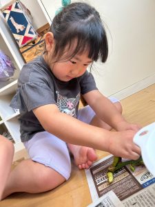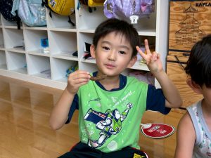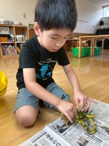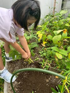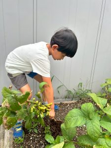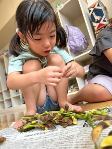 夏休みがあけて幼稚園にくると、育てていた枝豆が大きくなっていたので収穫して食べてみることに・・・