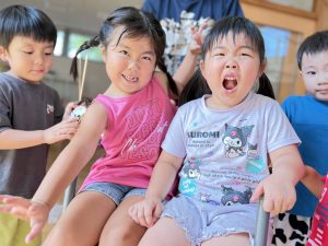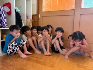 朝からみんなでねぶたごっこで大盛り上がり!!
