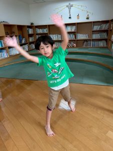 みんなが大好きな準備体操をニコニコで踊っているおひさまさん☀