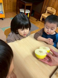 幼稚園の中で、楽しみました!!