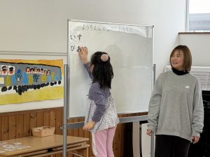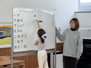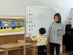 それぞれ幼稚園の中にあるものを考え、言葉を並べていきましたよ✨