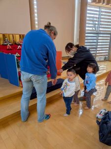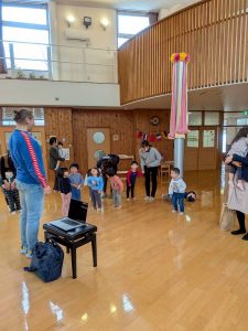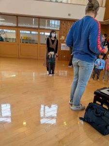 大きいミハイ先生を見ても誰も泣かないね!これからどんな楽しいことが始まるのかな?